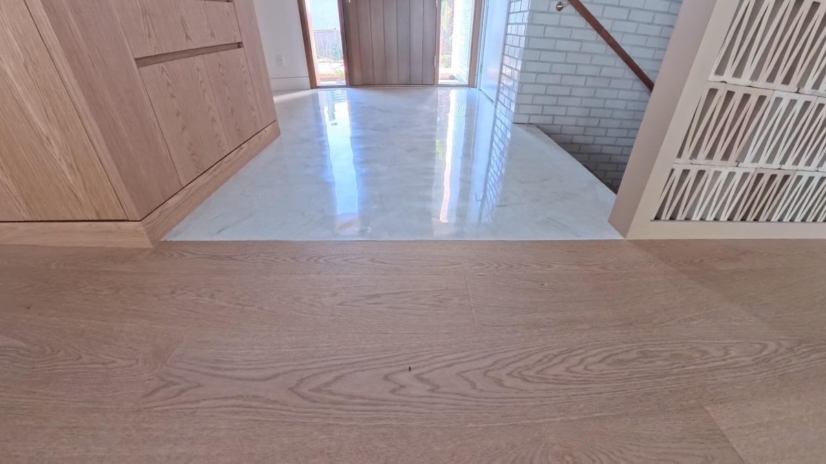 • Perfectly matched thresholds where terrazzo meets the hardwood floors.