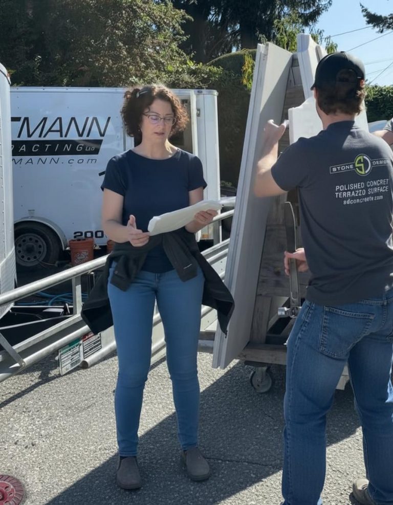 This project features a Palladian terrazzo installation using locally quarried Vancouver Island white marble in a modern waterfront home in Victoria. Working with Jenny Martin Design and general contractor GT Mann, our team installed terrazzo in the kitchen, entrance, and bathroom.