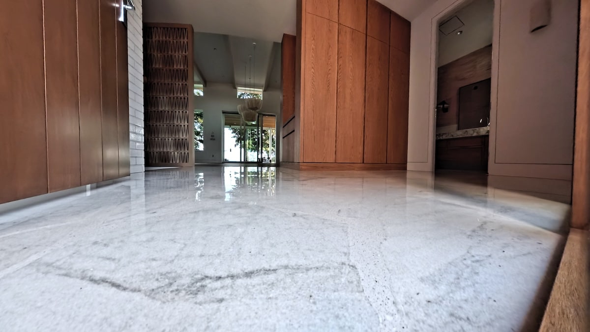 This process highlights one of the most unique qualities of Palladian terrazzo: its ability to be deeply customized. Unlike a manufactured product, each installation is handcrafted, allowing space for personal expression. Whether it’s a specific shape, a chosen stone, or even hidden messages, these floors can carry meaning that goes far beyond design—turning a surface into a legacy.